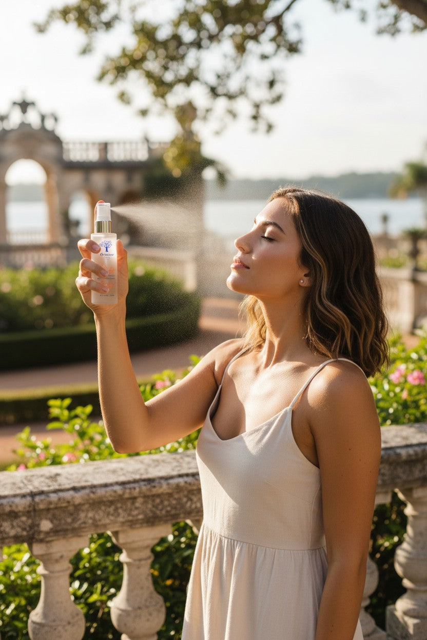 Indulge and rehydrate your skin, use Orangeur™ Facial Mist as a toner for an immediate energizing sensation or spray it between foundation and powder to perfectly set your makeup.